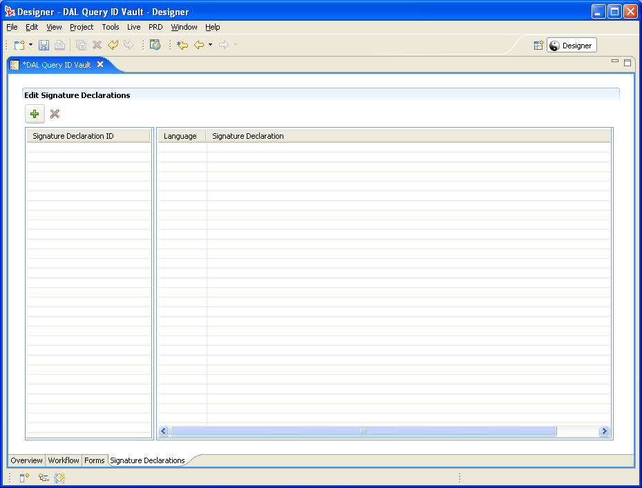 Choose a language and specify the signature declaration translation for that language. The signature declaration string is also exported as part of the Provisioning view’s so that you can send the declaration to be localized as part of the rest of the User Application display labels and strings. |