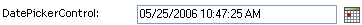 Use this control for display and entry of a date and time for a Time data type. This allows users to choose a date and time from a pop-up calendar or type a value in a text field. At runtime, the form automatically validates the date and time by using the format for the user’s locale and time zone. If the user enters an incorrect format, the form displays an error message. The DateTimePicker tooltip displays the valid date format. The default control looks like this: