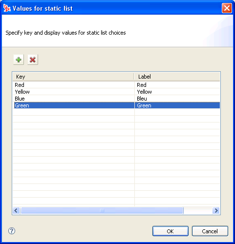 Allows you to define a set of static values that comprise the check box labels and values. Click the button to launch the list value dialog box shown here: