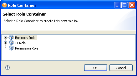 From the Provisioning view, open the , navigate to a Role-level container, right-click it, then select . The New Role Container dialog box displays: