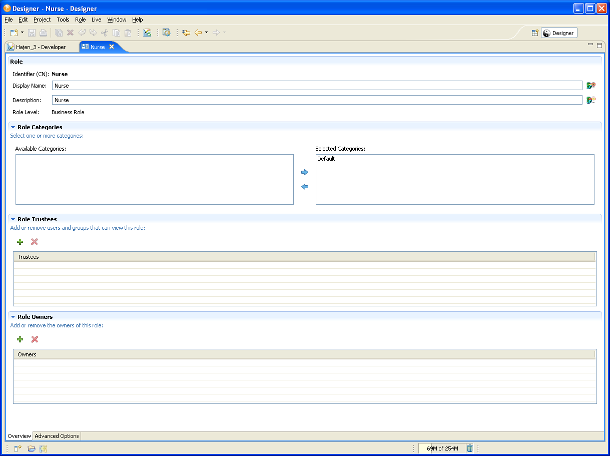 Fill in the remaining fields in the tab as described in Table 11-2, Role Overview Properties.