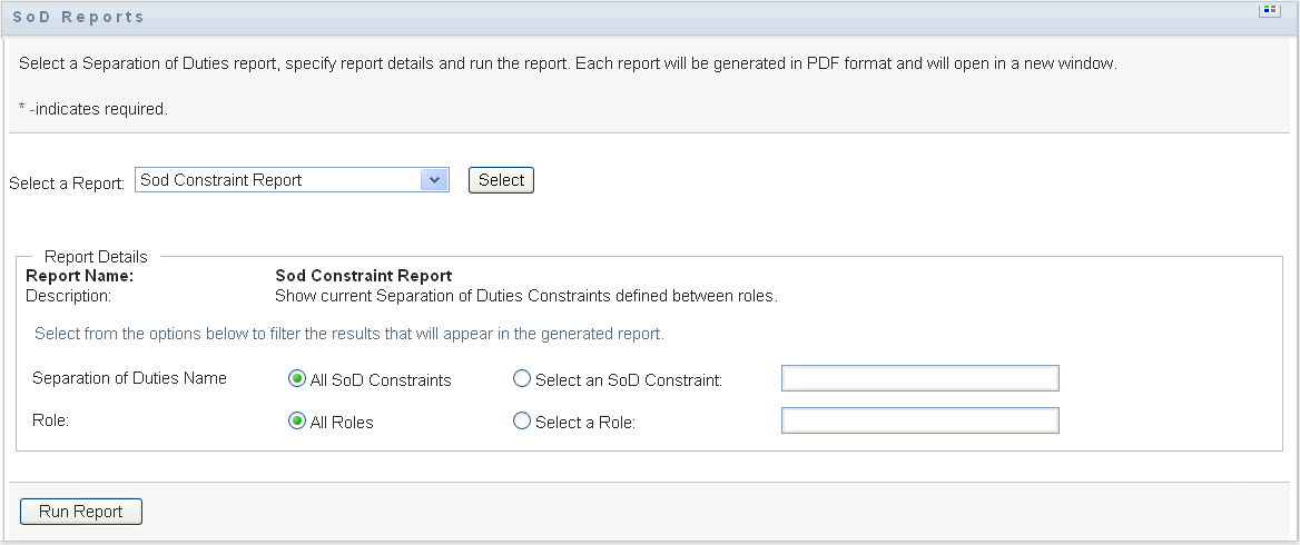 To create and view the SoD Constraint Report: