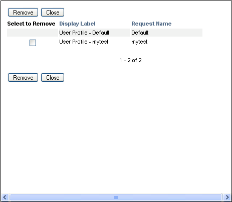 To remove a saved request, click the checkbox to the left of the display label, and click . You can remove multiple saved requests with a single click.