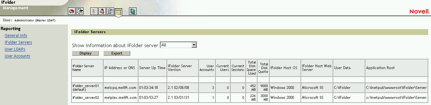 Figure 21-2 Novell iFolder Servers Report