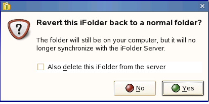 Select Yes to revert the iFolder to a normal folder.