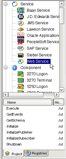 - Click OK. The Integration Manager window appears with the name of the project that you just created in the title bar. You can view the template artifacts that are included in the project by using the Project tab in the Navigator Frame. For example, to view the Web services that are included in the project, scroll down to the Services section of the Navigator Frame, then double-click on Web Services: