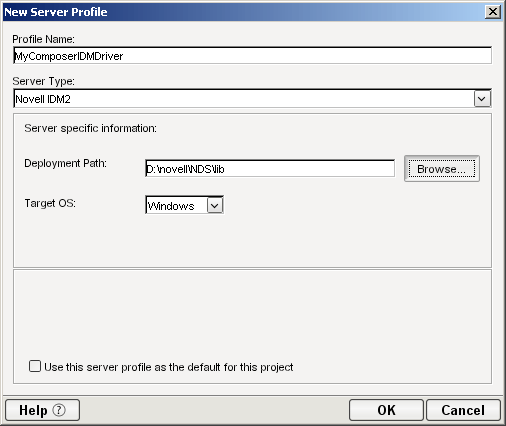 - Use the browse button in the Deployment Path field to select the eDirectory "lib" directory (on Windows this is \NDS\lib; on Linux or UNIX this is /usr/lib/dirxml/classes).