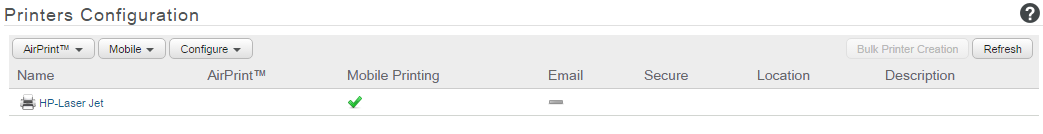 The printers listed in this screen can be enabled for AirPrint, Mobile, and Email printing for iPrint Appliance.