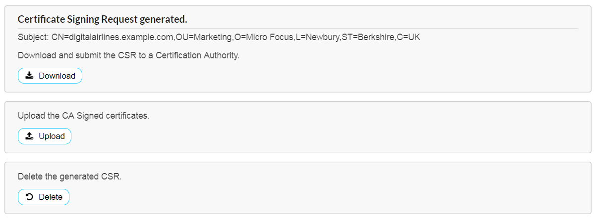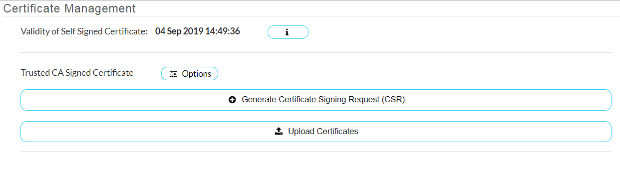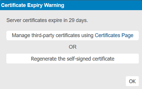 Manage Certificates: Displays the Certificates page. The certificates are managed from this location.