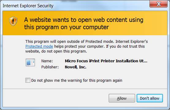 (Optional) To avoid future prompts to launch the iPrint applications, select the Do not show me the warning for this program again check box.