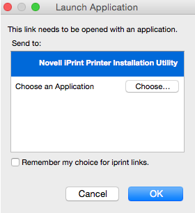 Select Novell iPrint Printer Installation Utility in the Launch Application dialog box, then click OK to proceed with the installation of the printer.
