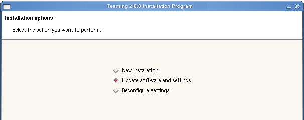 Select or , depending on the type of Teaming installation you are updating, then click .
