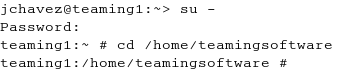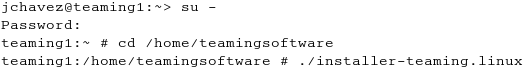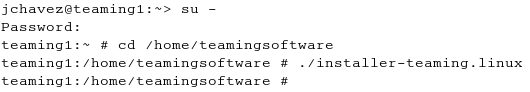 Next, change to the directory where you downloaded and extracted the Teaming software. In this demonstration, we use /home/teamingsoftware.