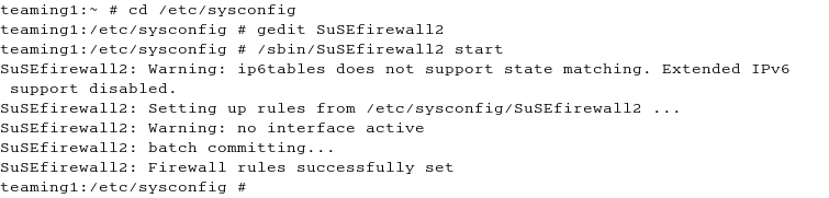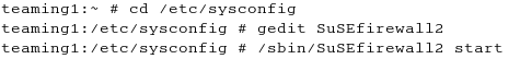 After editing the SuSEfirewall2 file, the firewall must be restarted.