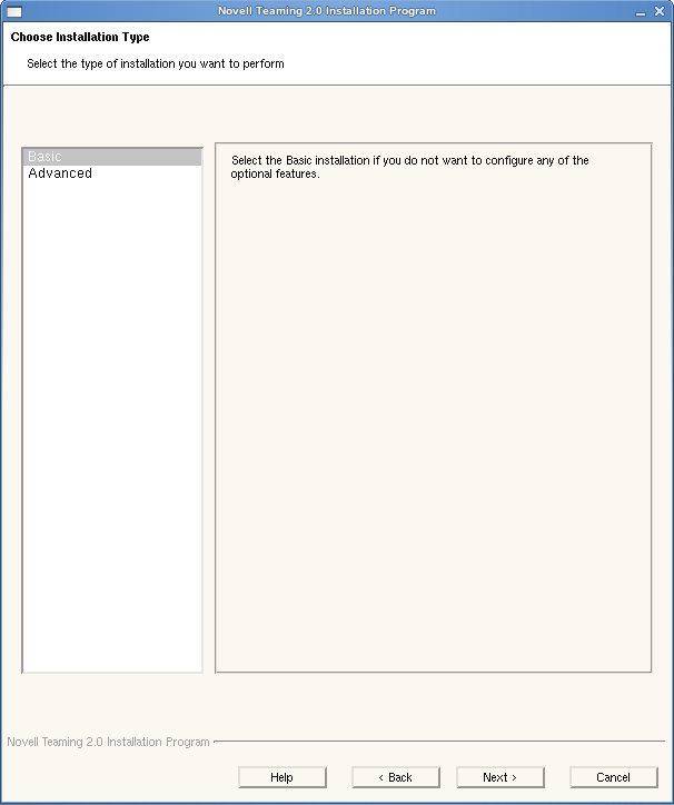 A installation gets your Teaming site installed and running as quickly and easily as possible, so click once again to accept the default of a Basic installation.