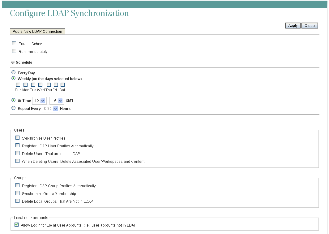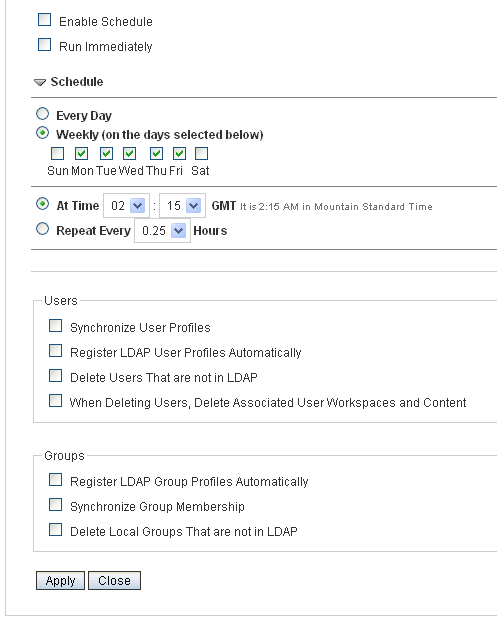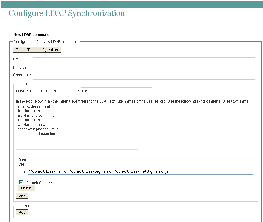 You also need to make some decisions about how you want LDAP synchronization to work, such as when to perform synchronization and what specifically to synchronize. The Teaming Installation Guide helps you decide how to configure LDAP to meet the needs of your Teaming site.