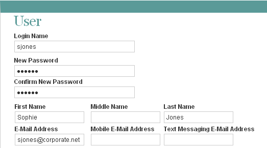 For the single user, provide a username, password, first name, last name, and e-mail address, then click .