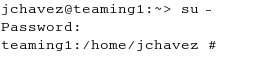 In a terminal window on the Linux server, change to the Linux root user, then provide the root password. root permissions are required to install the Teaming software, but should not be used when you run the Teaming software.