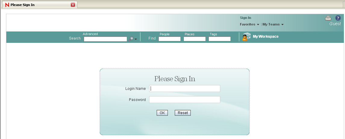 In a Web browser on a workstation, provide the Teaming site URL, which is simply the hostname of the Teaming server. Thanks to port forwarding, you don’t need to include a port number.
