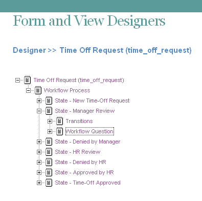 In the Designer page, expand the workflow definition that you created in Section 11.2.1, Creating the Workflow Definition.