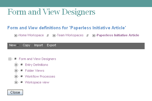 Unless you are the Teaming administrator, you can perform the following procedure only on custom views and forms for which you have appropriate rights.
