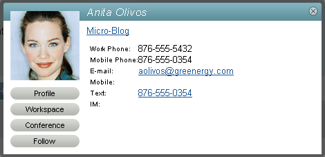 The icon is displayed next to a user’s name wherever the user has posted or commented on a Teaming entry. When you click a user’s presence icon, the Profile Quick View is displayed.