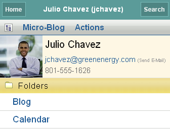 You can navigate to a user’s personal workspace by selecting the user’s linked name that appears next to any entry that user has posted. Or, you can search for the user as described in Section 15.4.1, Searching the Mobile Interface.