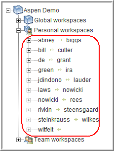 If you use search_getWorkspaceTreeAsXML to get one level of the tree starting at the Workspaces node, Vibe returns information about Global workspaces, Personal workspaces, and Team workspaces.