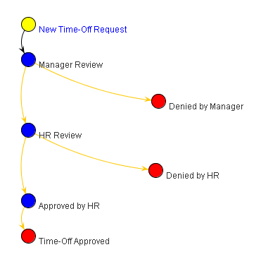 Workflow questions can enhance the ease and usability of workflows. For example, imagine a Time-Off Request workflow where a manager can respond to a request by simply selecting or in the workflow.