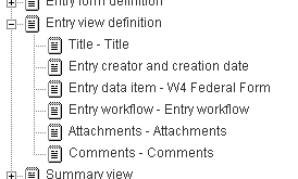 However, the W-4 application does not include a title element on the form. It uses JavaScript and DOM coding to construct a title for the entry. For example, if the person filling out a W-4 form specified as a first name and as a last name, then the created entry combines the values of two form elements and uses as the entry title. This customization was included to illustrate possibilities for your JSP customizations.