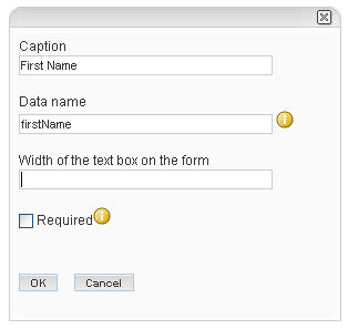 In the previous graphic, the caption for the custom text box is . The form in the previous graphic also specifies all three custom JSP files: three separate file specifications for the form, the view, and the mail message.