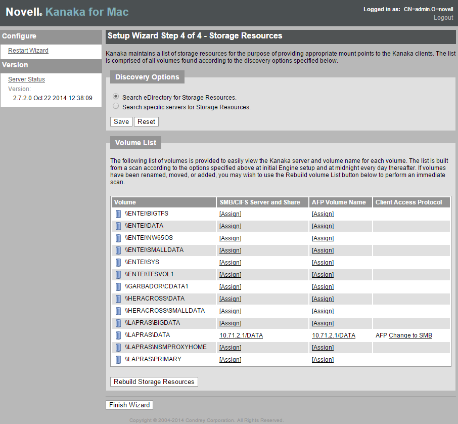 After each volume is listed and assigned, click Finish Wizard to conclude the Setup Wizard.