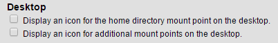 These options place a mount point on the user’s desktop. This mount point is at the root of the volume, so users will need to drill down to get to the folders and files they have rights to.