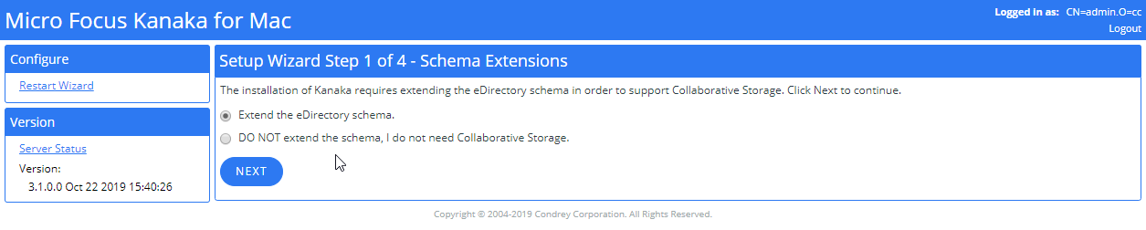 Click Next to extend the eDirectory schema.