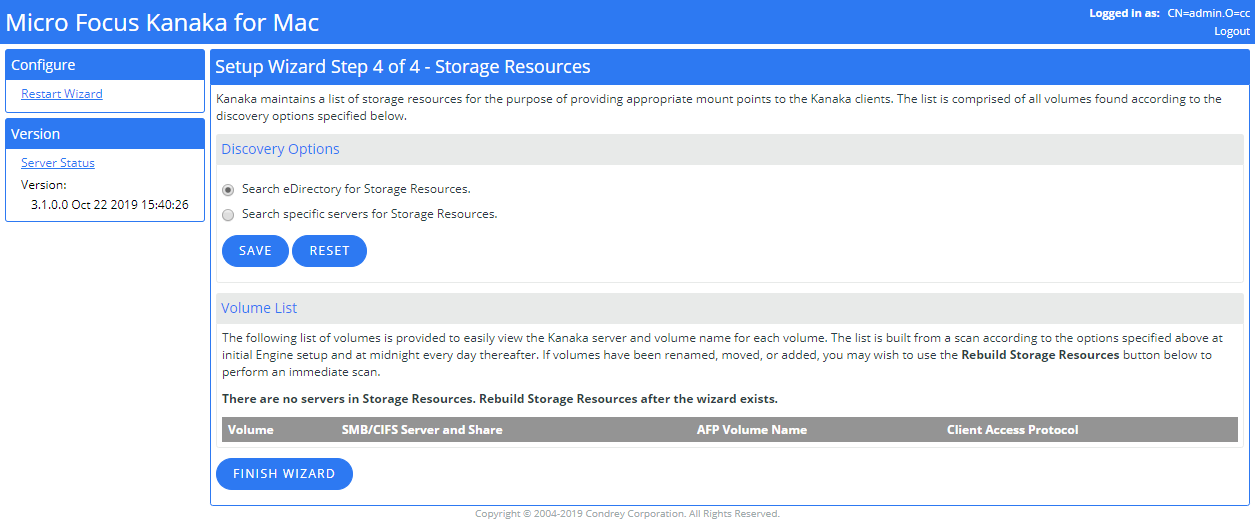 Storage Resources cannot be built during the setup wizard. However, it can be built once the setup wizard has finished and an internal restart of the Kanaka Engine server takes place.