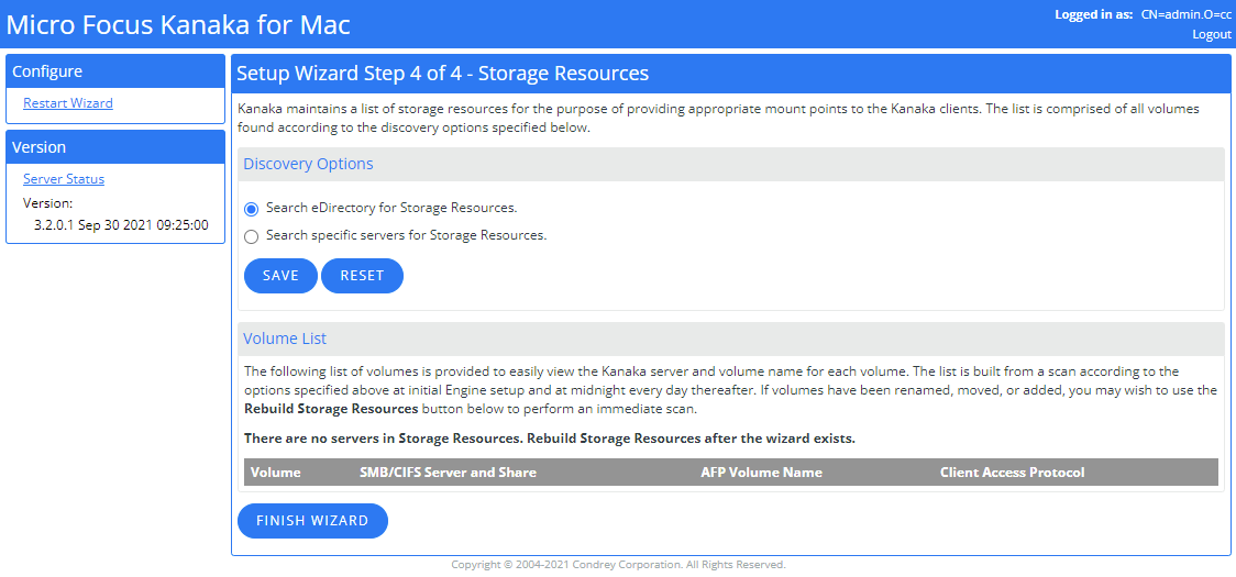 Storage Resources cannot be built during the setup wizard. However, it can be built once the setup wizard has finished and an internal restart of the Kanaka Engine server takes place.