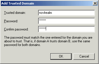 IMPORTANT:Make sure that in both realms the password or key of krbtgt/w2kdomain@novlrealm is the same.