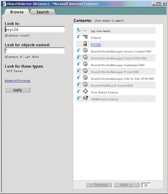 Select a server from the list (it should be one of the underlined objects), then click Next.
