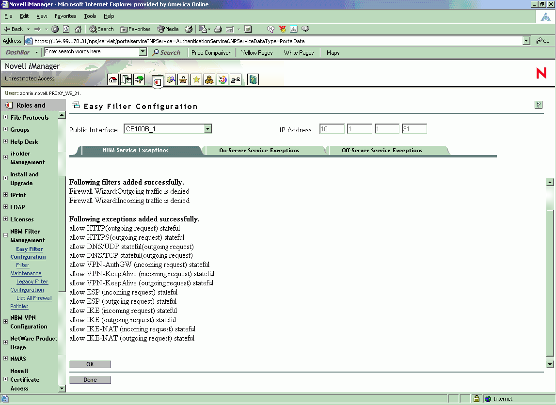 Click the Easy Filter Configuration task under NBM Filter Management.