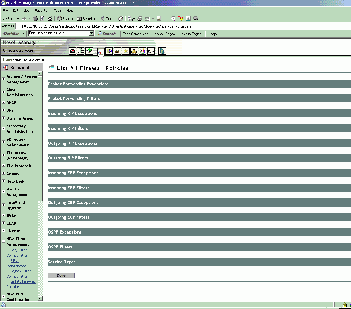 Filter Modification: When you click this icon, all the filters and exceptions listed under each heading is displayed. To modify a filter, click its name, make your changes on the screens that follow, and then click Done.