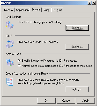You can also create system rules by clicking the Settings button; this is very similar to how application-based rules are created. (See Creating Rules for Applications.)