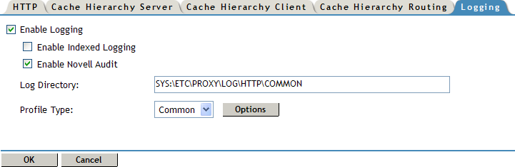 In addition to setting up common format, extended format, or indexed format logging for an HTTP server or HTTP acceleration, you can also set up indexed format logging for FTP, Mail, News, Generic, Domain Name System (DNS), and RealAudio and Real Time Streaming Protocol (RTSP) proxy services from the individual proxy configuration dialogs.