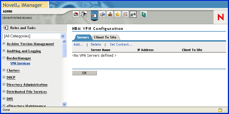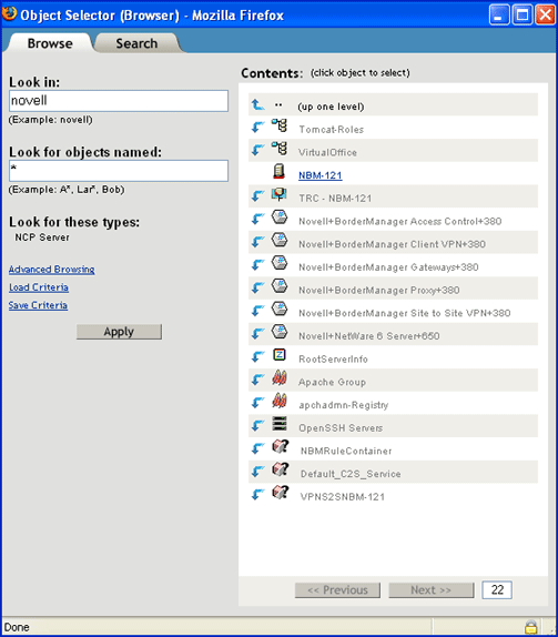 icon and select the Novell eDirectory context in which you would want to view the already configured VPN servers. Select