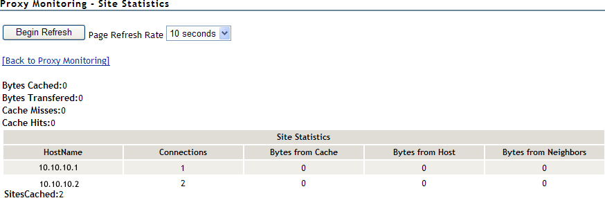 Connections: Number of TCP connections required for a direct connection to the host server. This number represents the number of connections the proxy cache has saved its clients, because Proxy Services has cached the site.