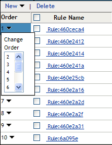 Select the order that you want to move the access rule to. For example, if you want to move the access rule that is currently in the first position to the eighth position, click the arrow in the Order section of the first access rule, then select 8. The access rule shifts to the eighth position.