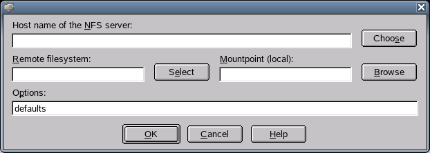 Click or to enter or edit the hostname of the NFS server, the directory to import, and the mount point to mount this directory to locally.