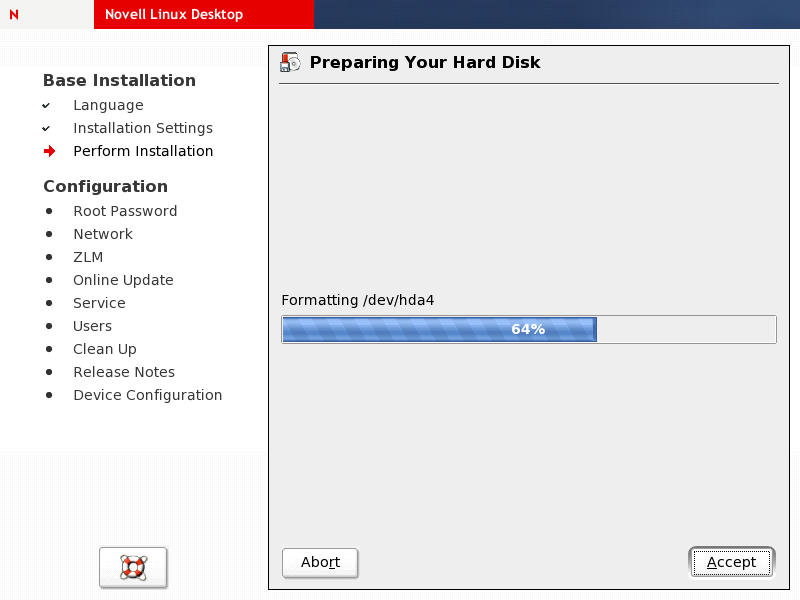 After the hard disk has been partitioned and formatted according to your preferences, YaST installs the software packages. If installing from an NLD DVD, all packages get installed without any further actions required from your side. If you are installing from a set of NLD CDs, you need to change CDs when prompted.