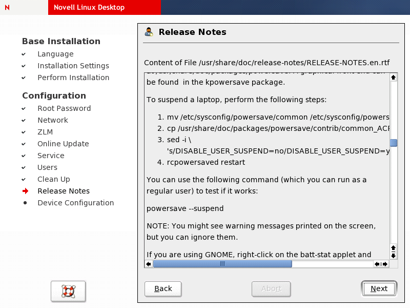 Figure 2-29 Release Notes of Novell Linux Desktop