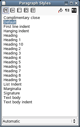 Click to open the Style Catalog, which you can use to create, edit, and manage the formatting styles used by OpenOffice.org.