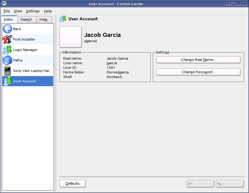 This module gives you options for changing basic user information such as your full name, your password, and the icon that represents your account when you log in.